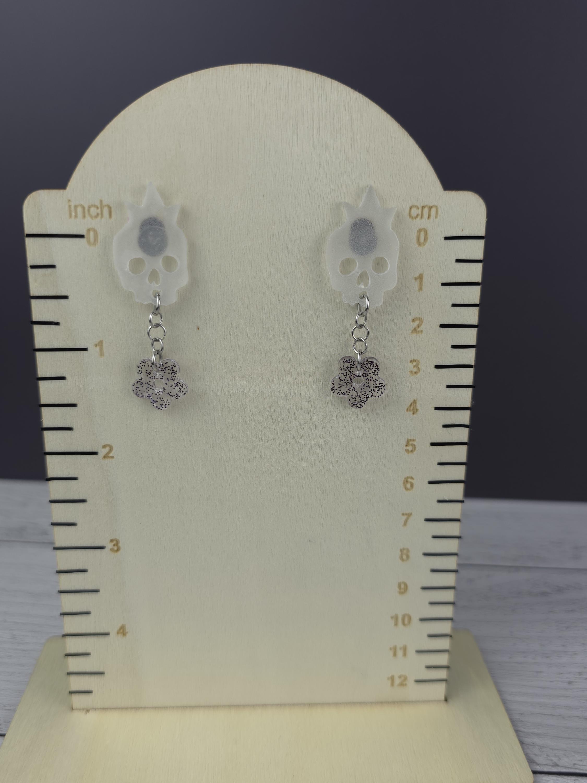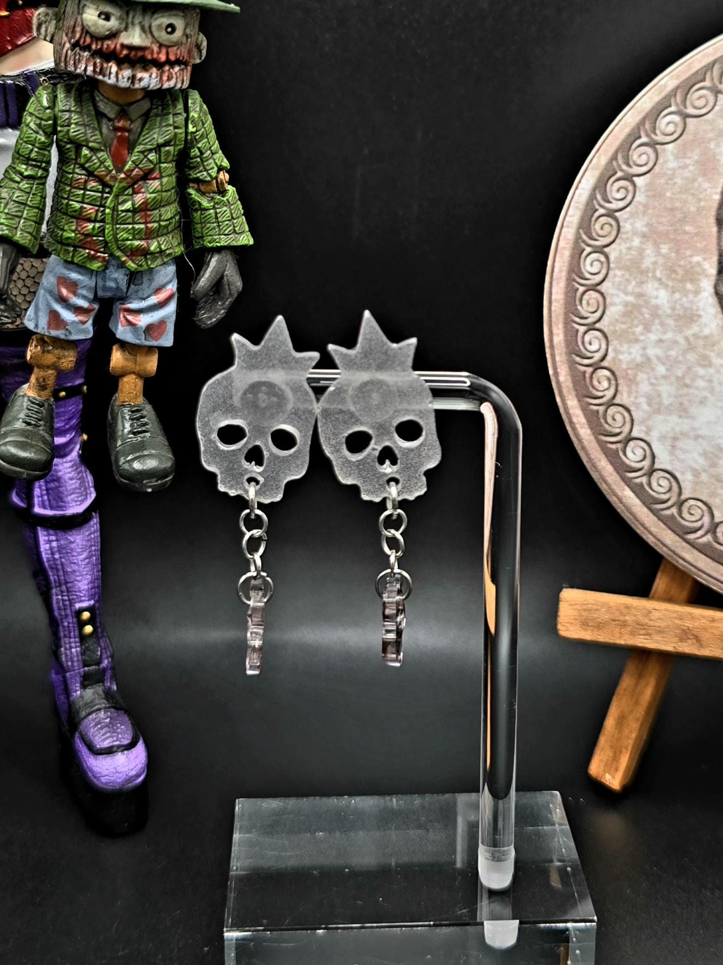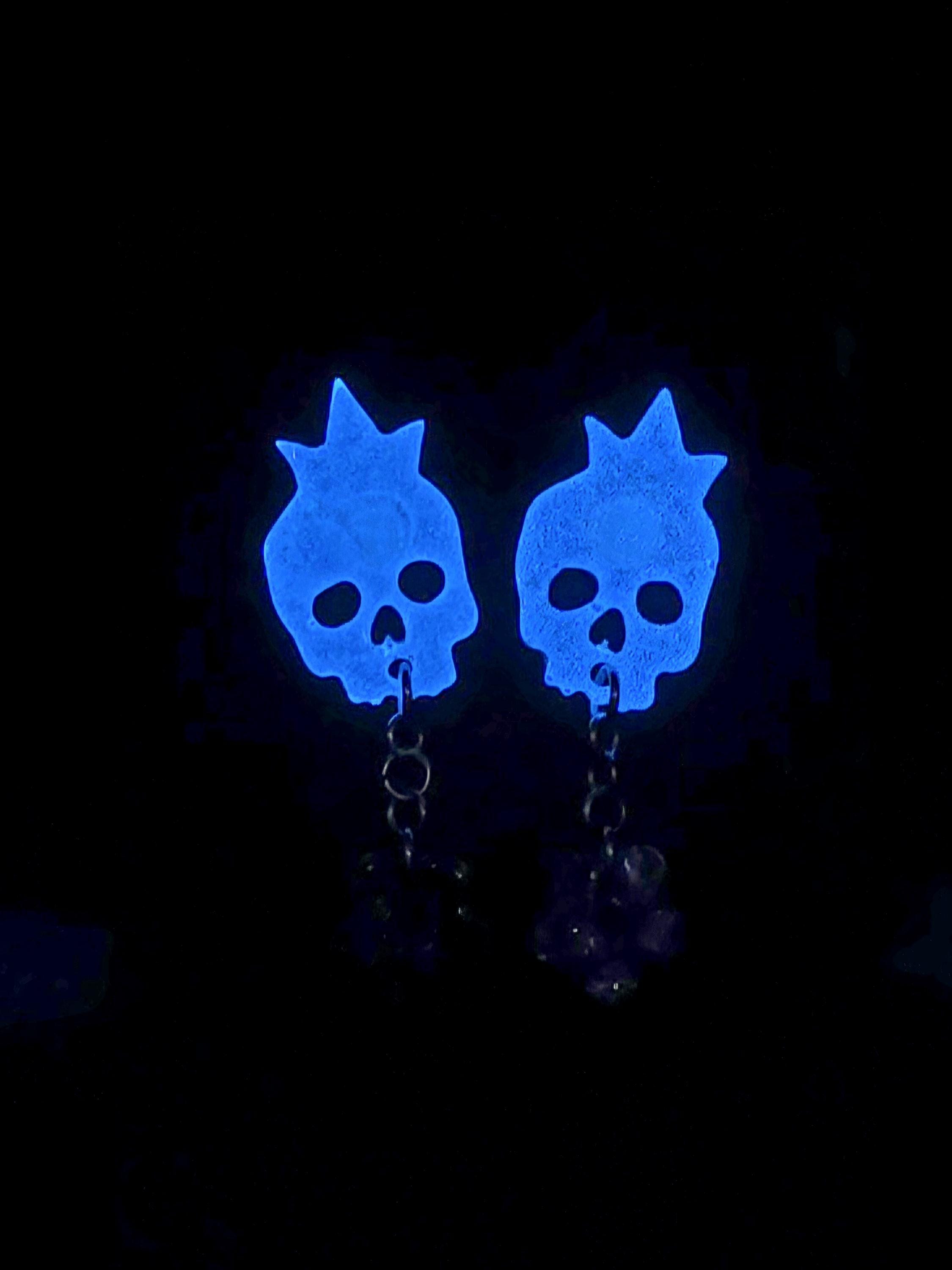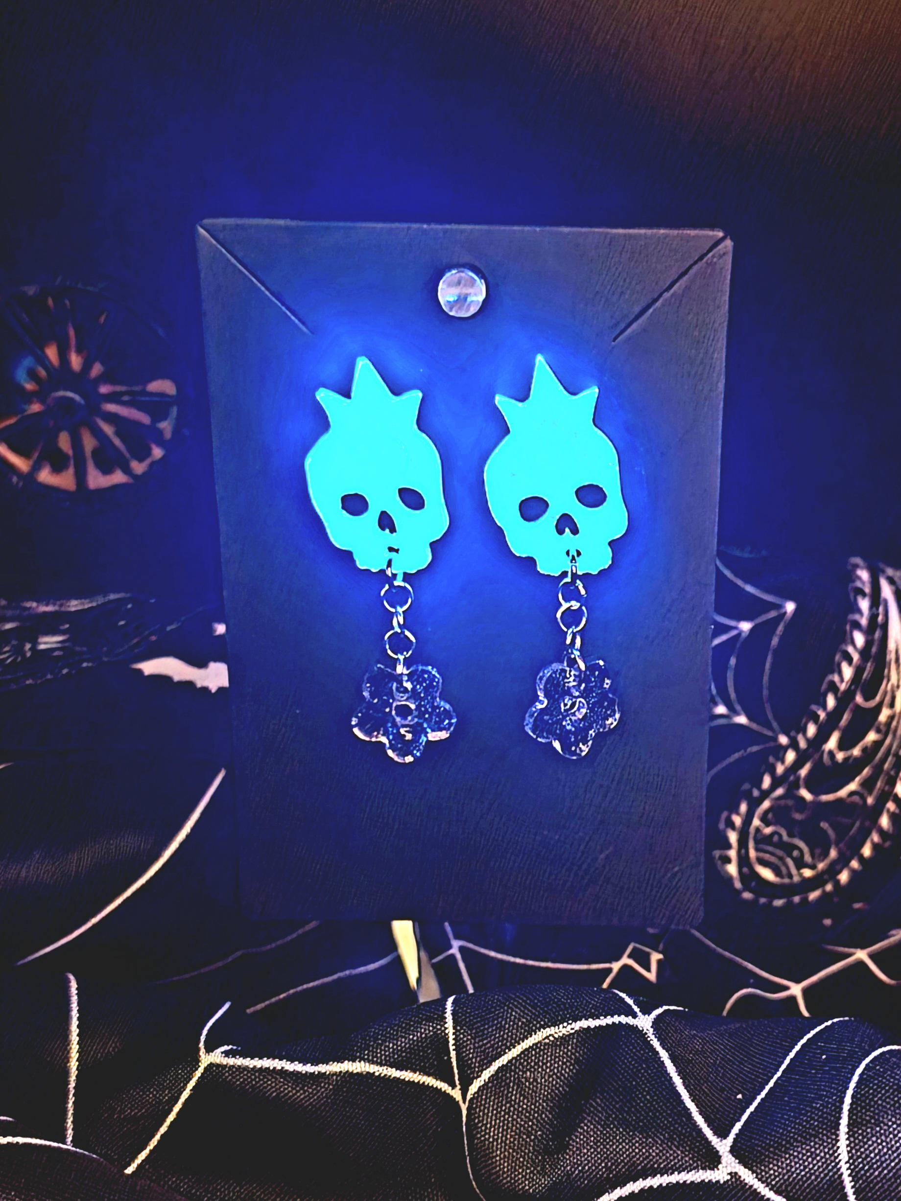 Expertly crafted with stunning epoxy resin, the Skull Queen earrings are a unique addition to any jewelry collection. These earrings not only glow in the dark, but are also made with high-quality stainless steel for durability. Perfect for everyday wear or to add a spooky touch to your Halloween look. Measurements 1.5 inches long.