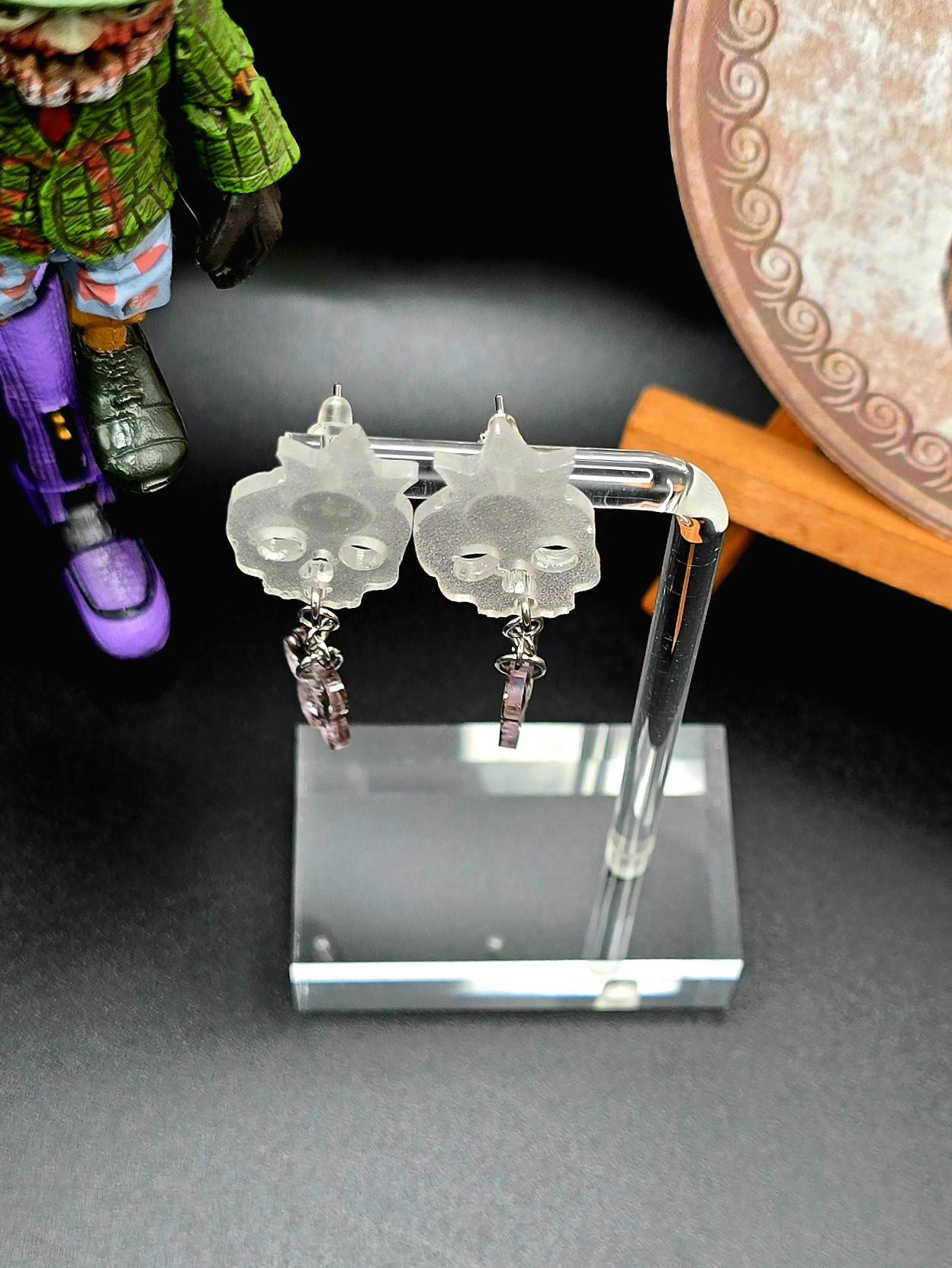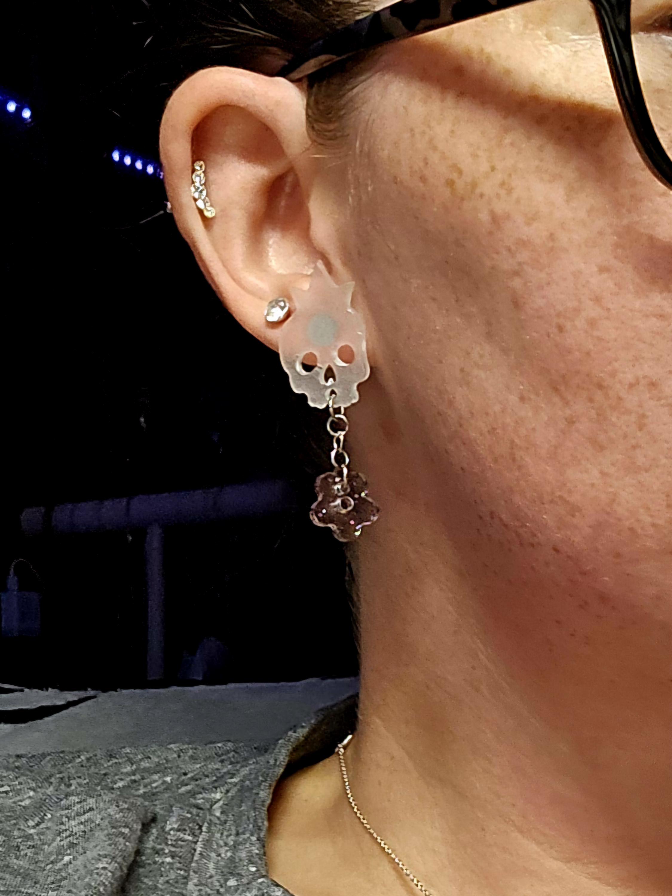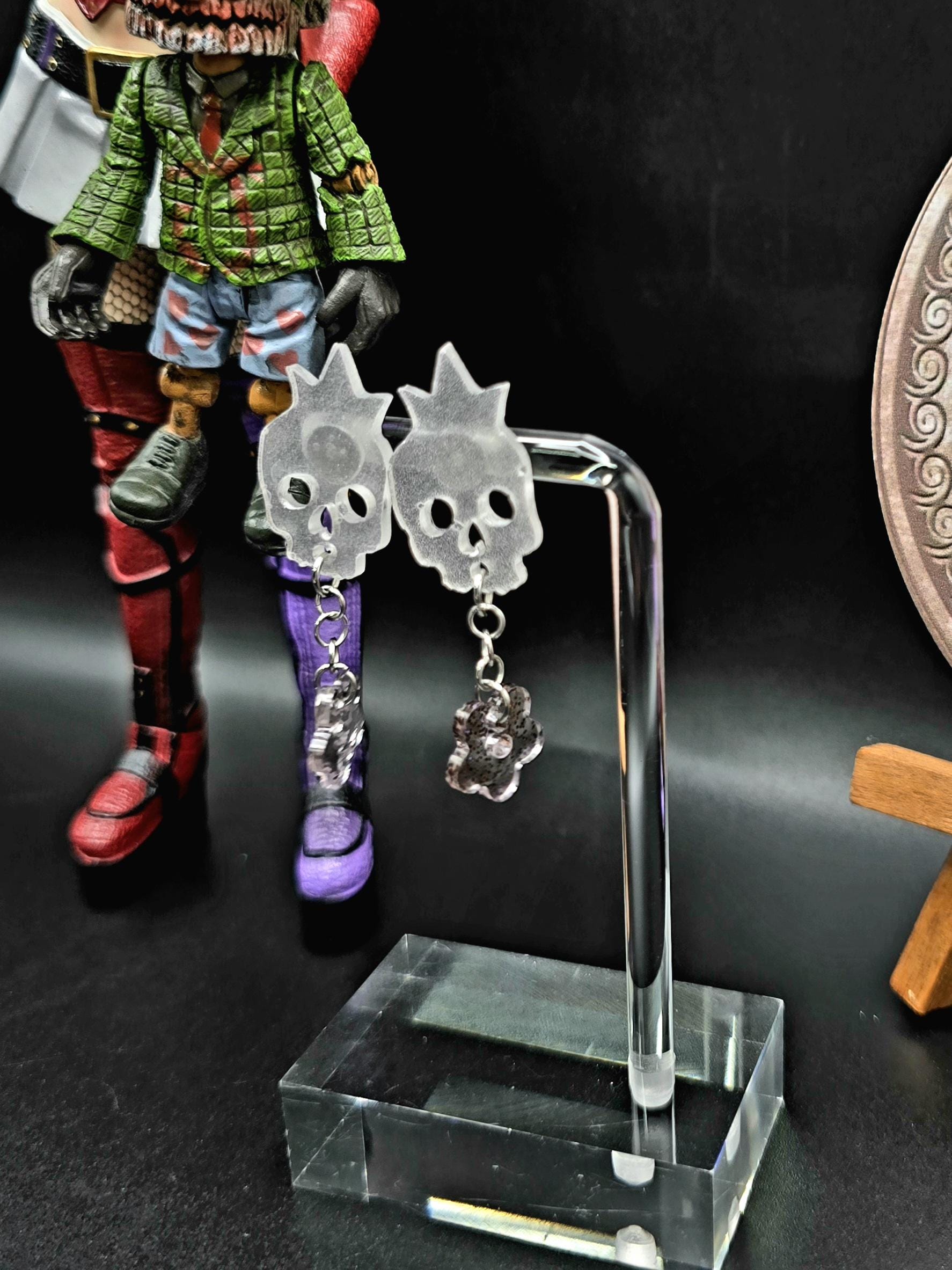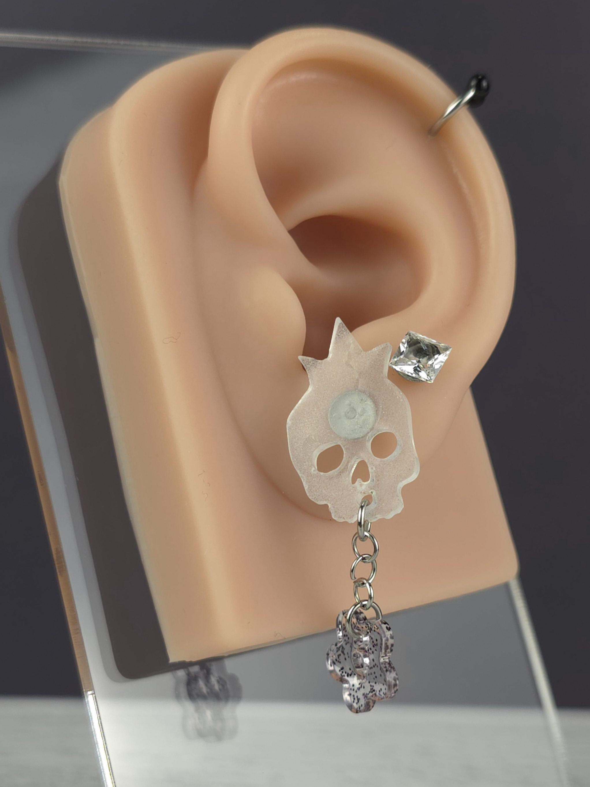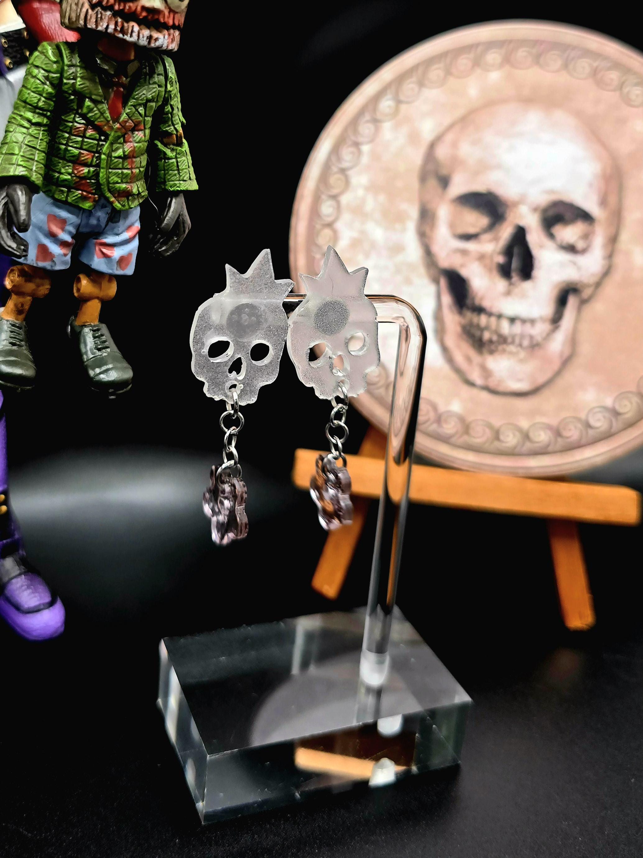 Expertly crafted with stunning epoxy resin, the Skull Queen earrings are a unique addition to any jewelry collection. These earrings not only glow in the dark, but are also made with high-quality stainless steel for durability. Perfect for everyday wear or to add a spooky touch to your Halloween look. Measurements 1.5 inches long.