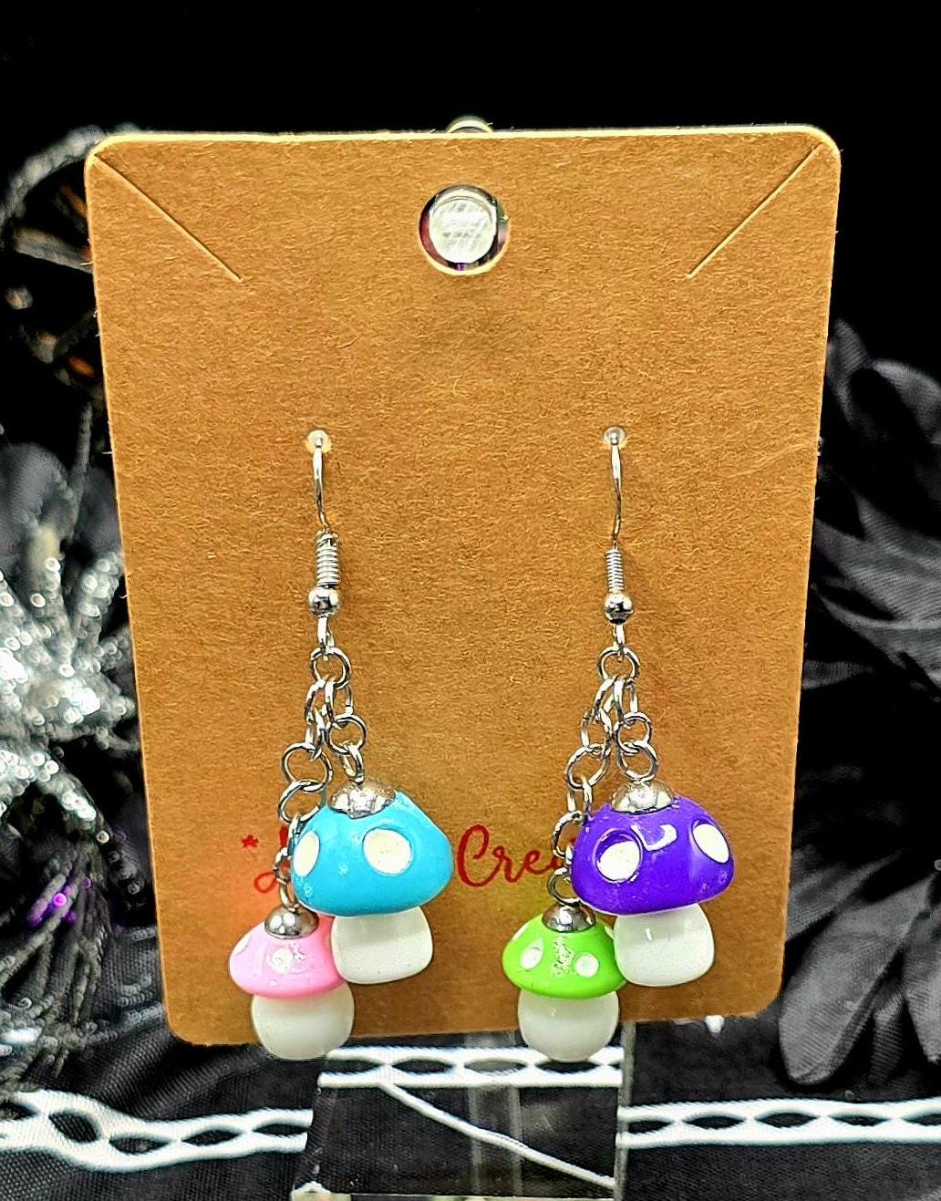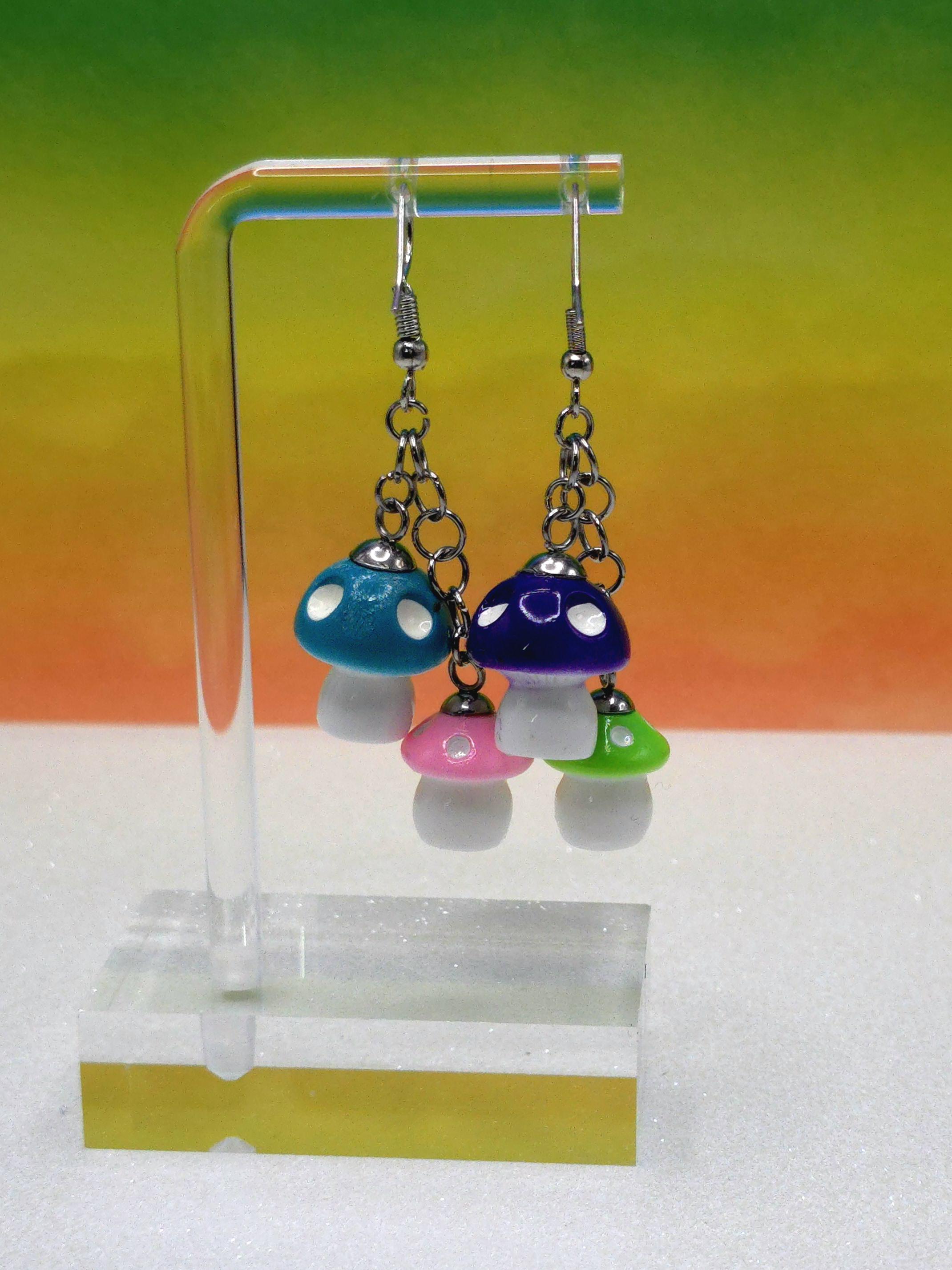 Dangly Multicolor Mushroom Stainless Steel Hook Style Earrings
