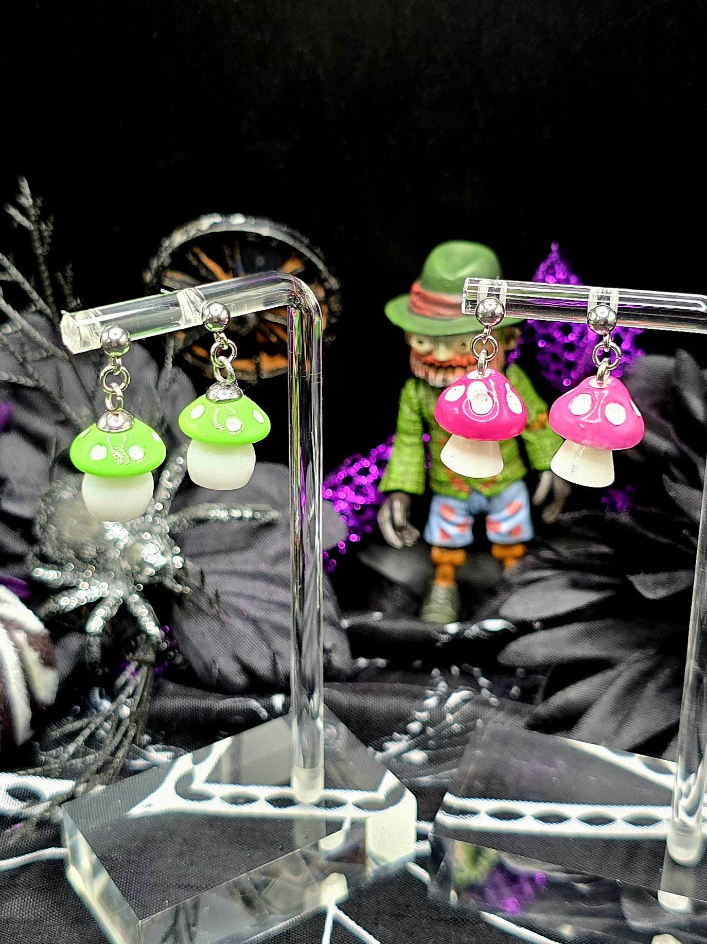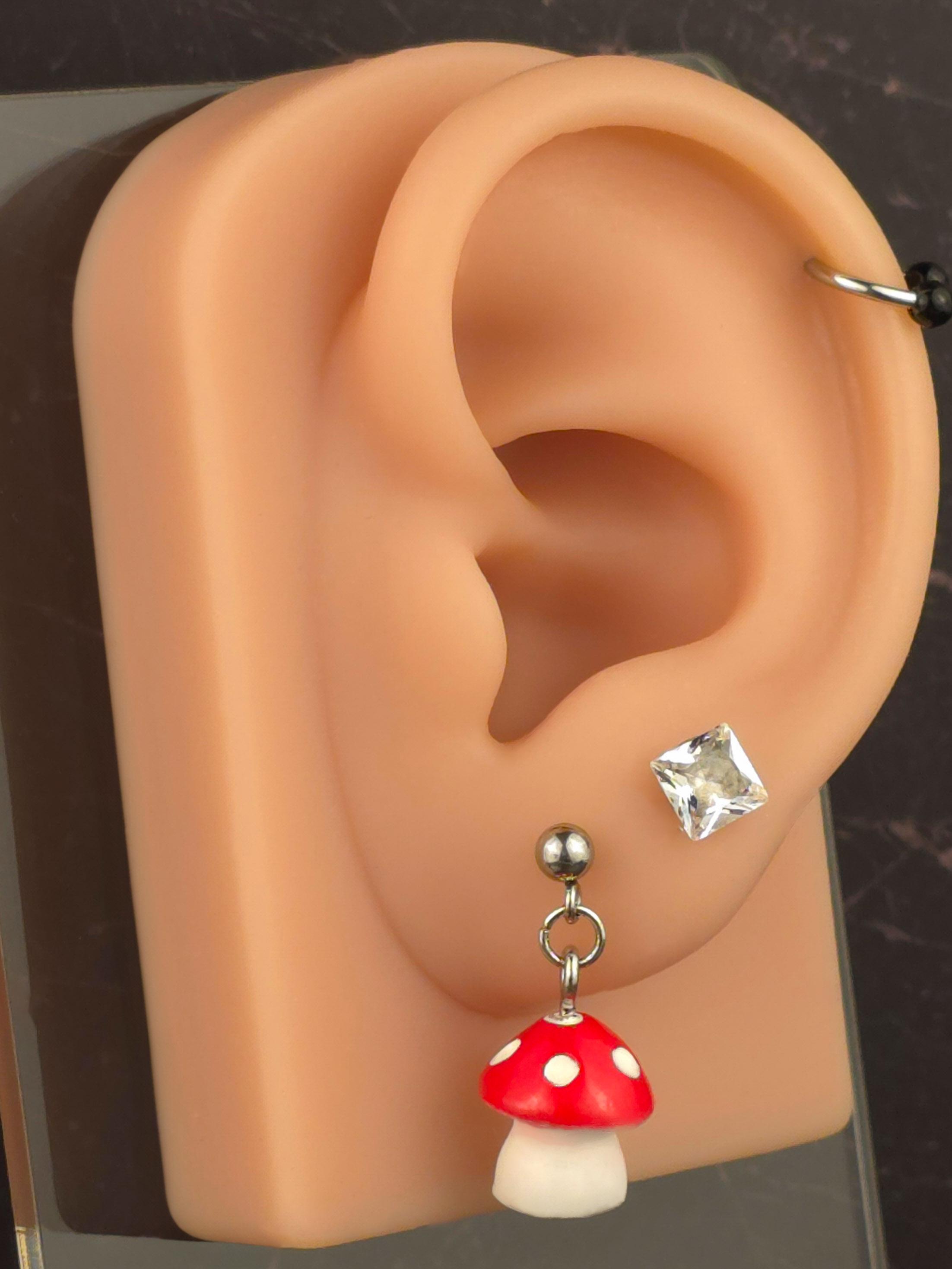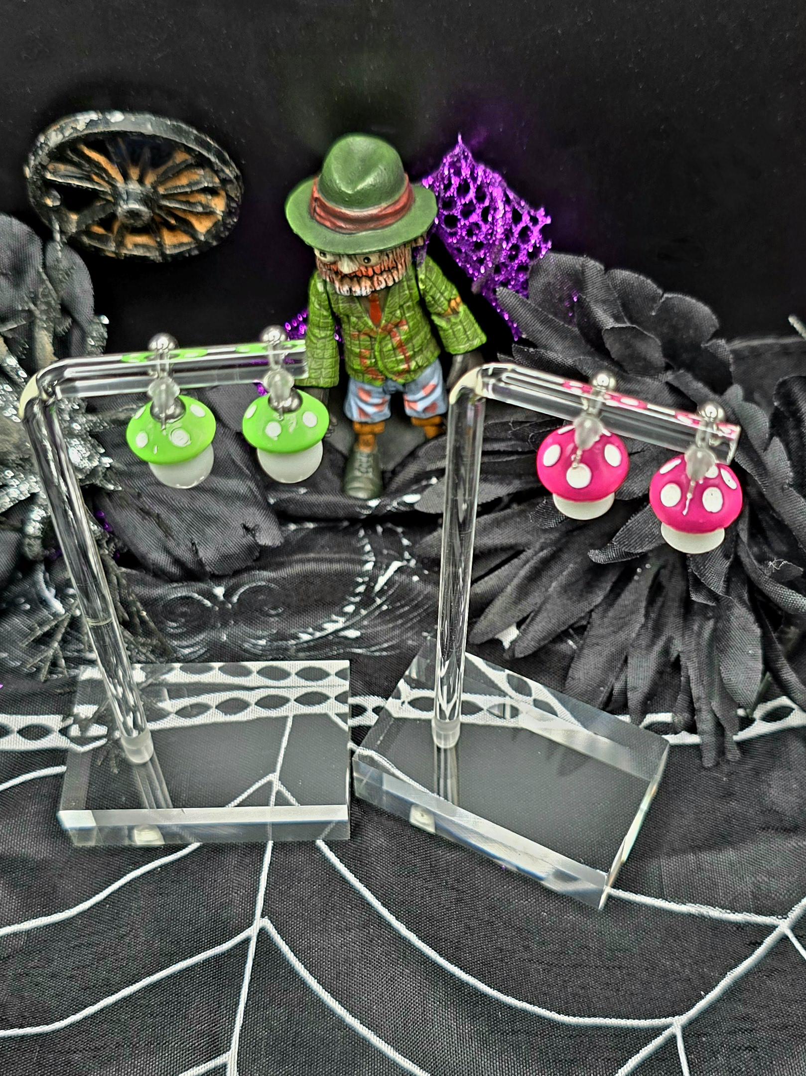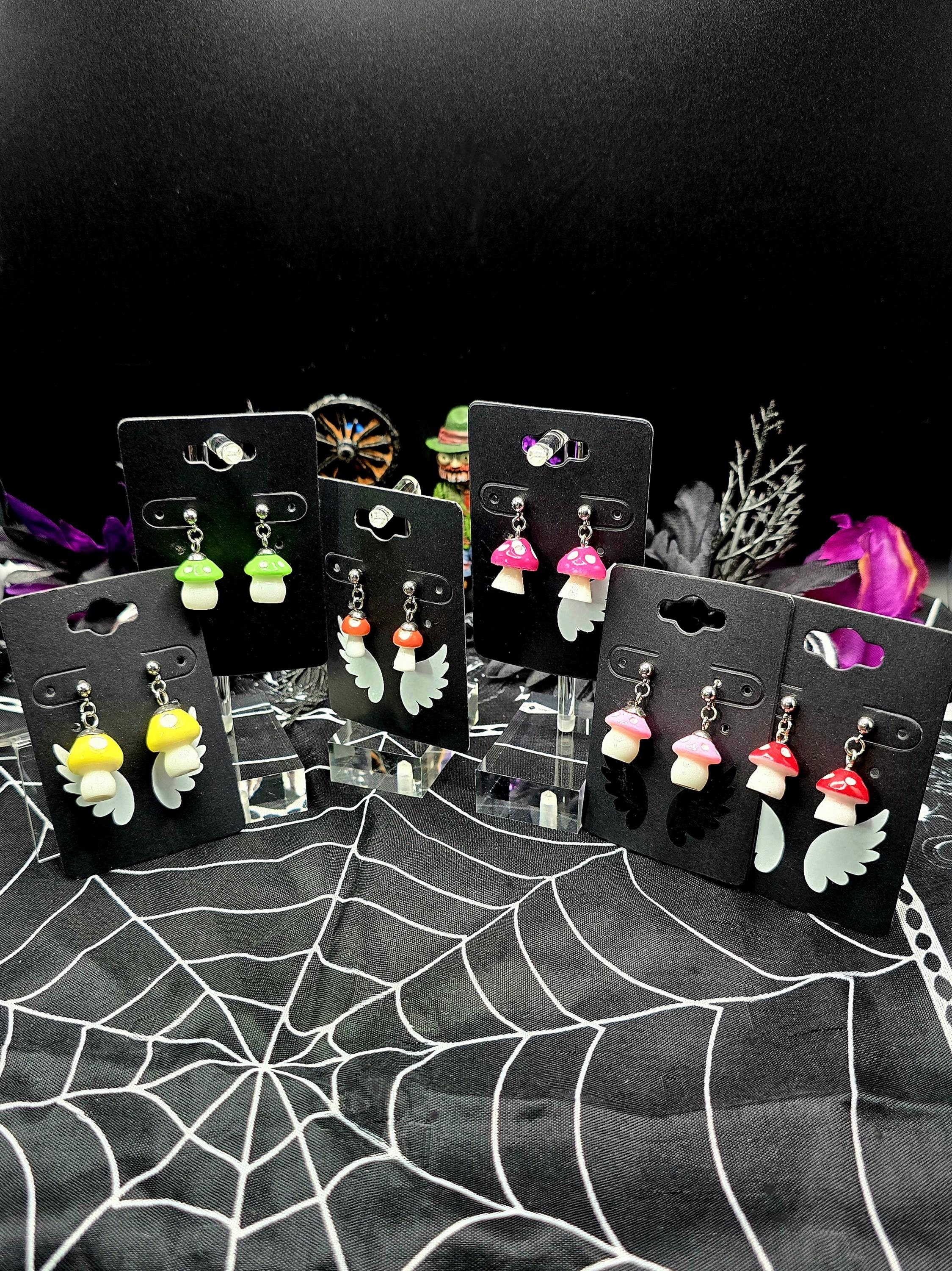 Upgrade your style game with our Fun Mushroom Ball Post Style Earrings! Made with all stainless steel materials, mushroom charms are made from plastic. Making these earrings are not only stylish but also durable. Total length is .75 inches. Available in a variety of colors, they are the perfect addition to any outfit. Elevate your look with these fun and trendy earrings.These earrings are 2.5cm long, with a drop length of 2cm long. The mushroom charms are 1.5cm long by 1.5cm wide (at the widest point of charm).