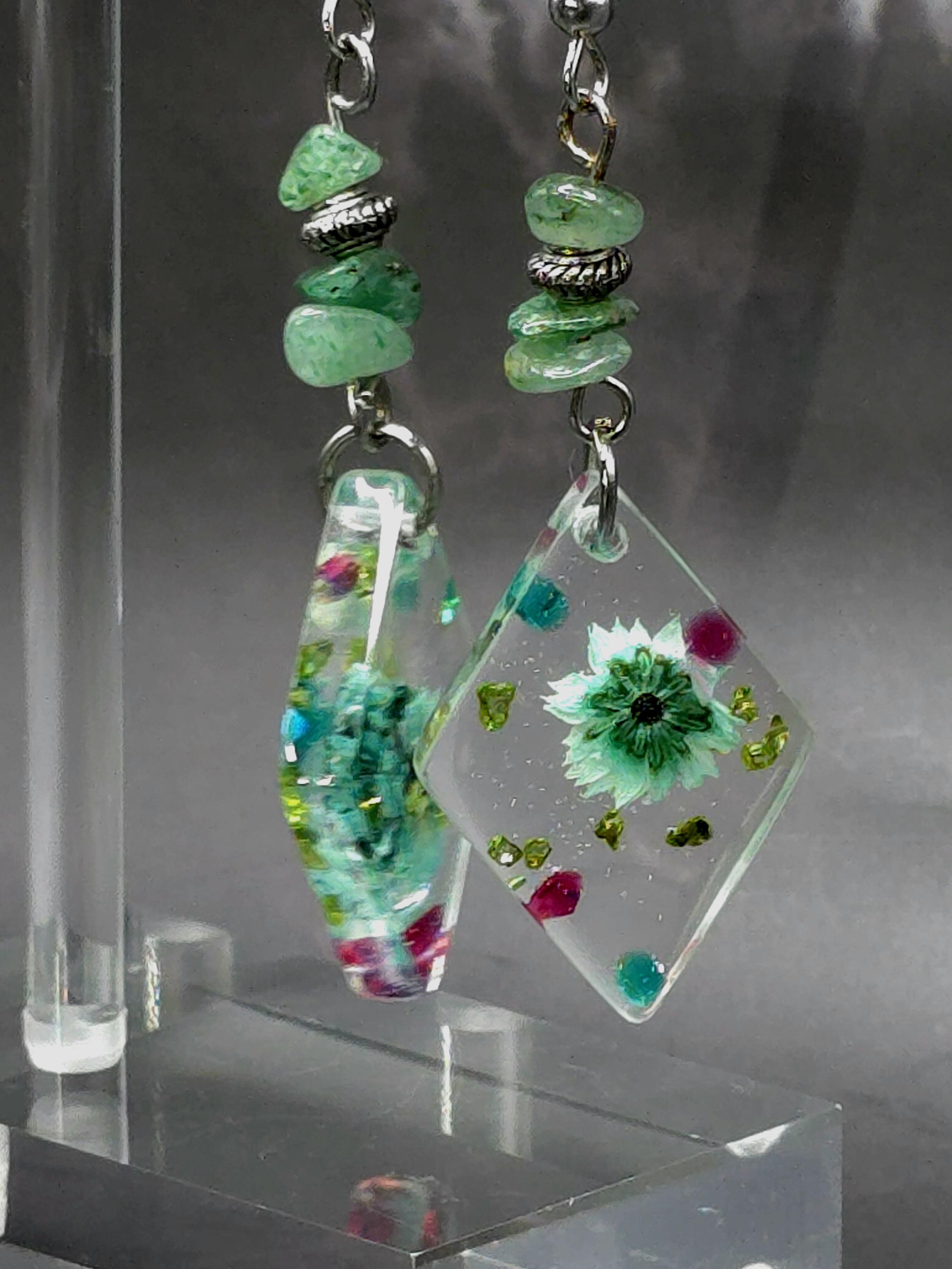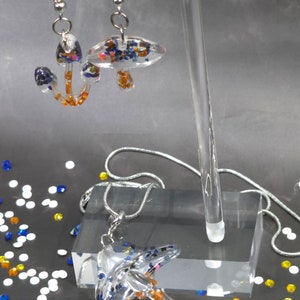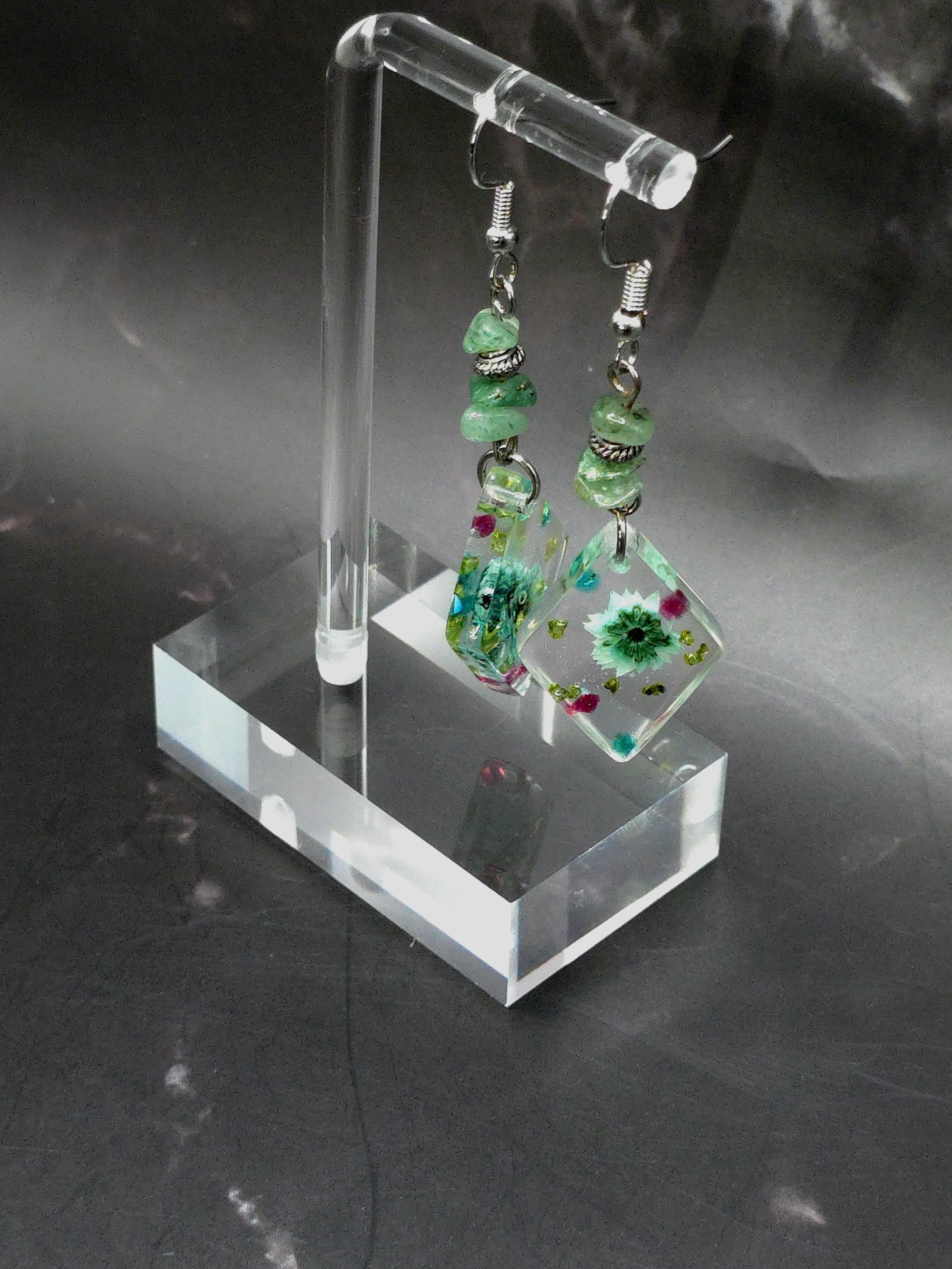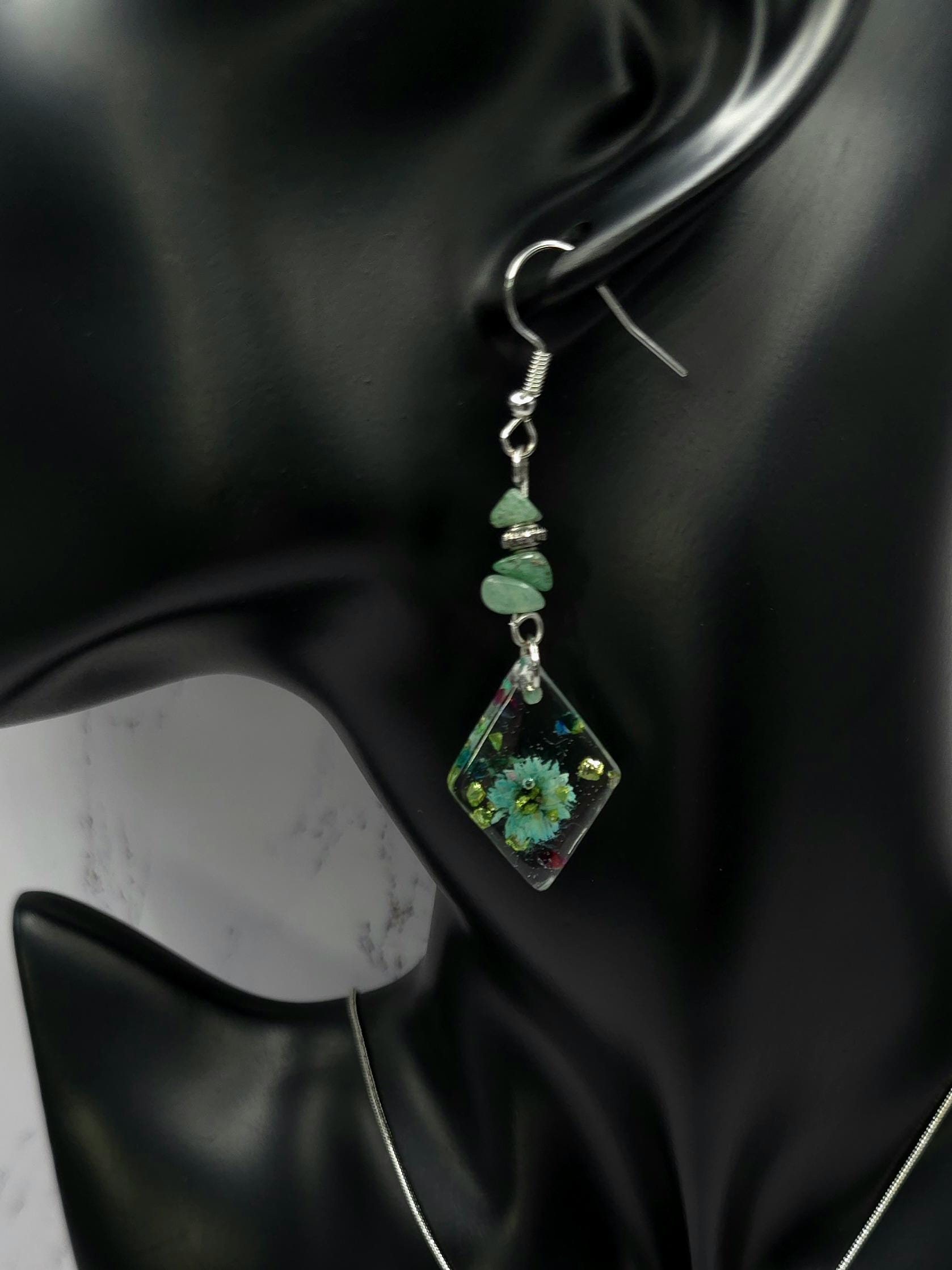 Handmade Resin Flower Jewelry Set: Stainless Steel Necklace and Earrings