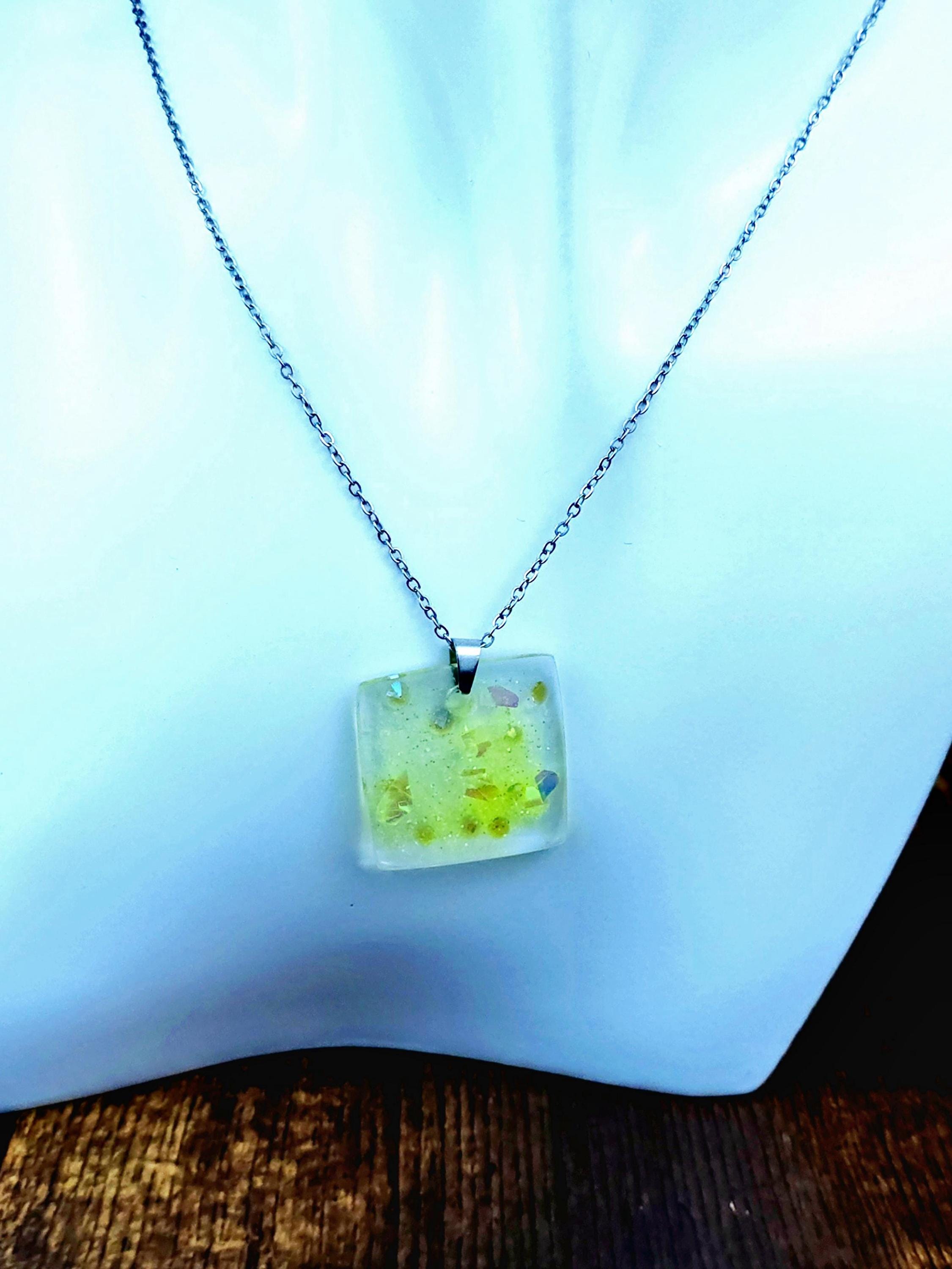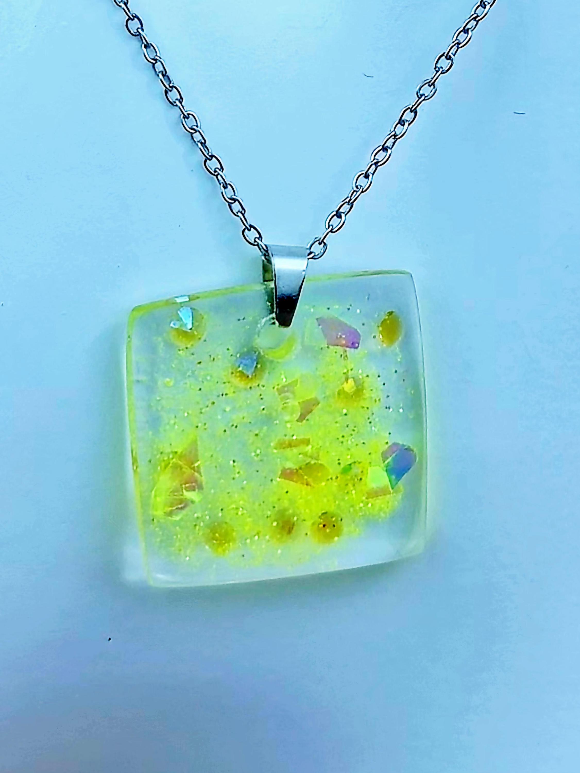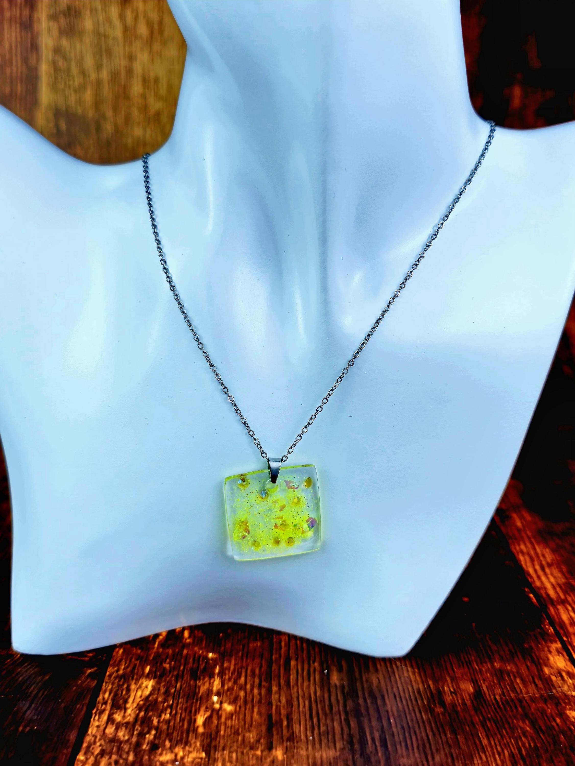 Yellow Resin Pendant Necklace: Stainless Steel Chain Necklace