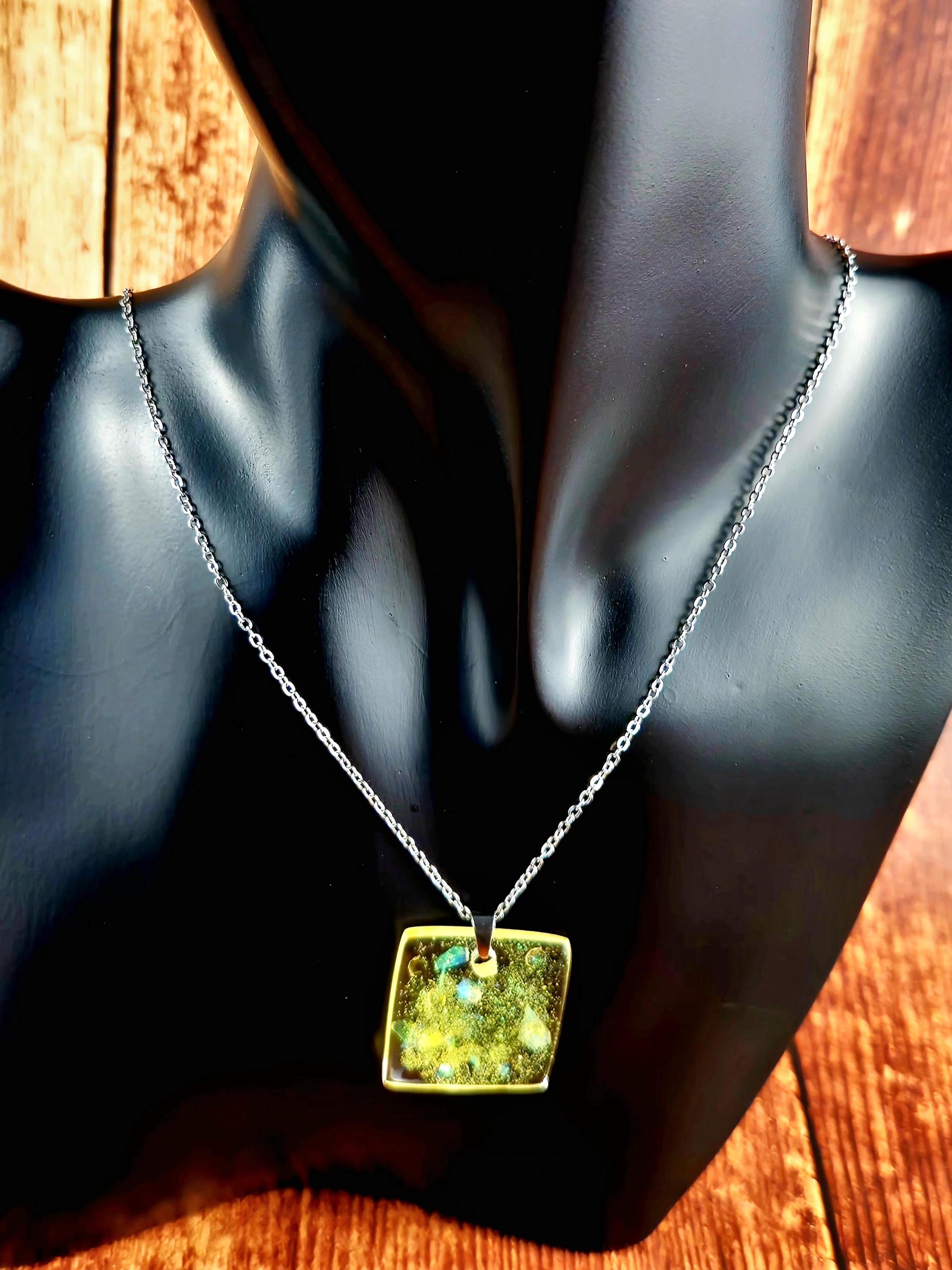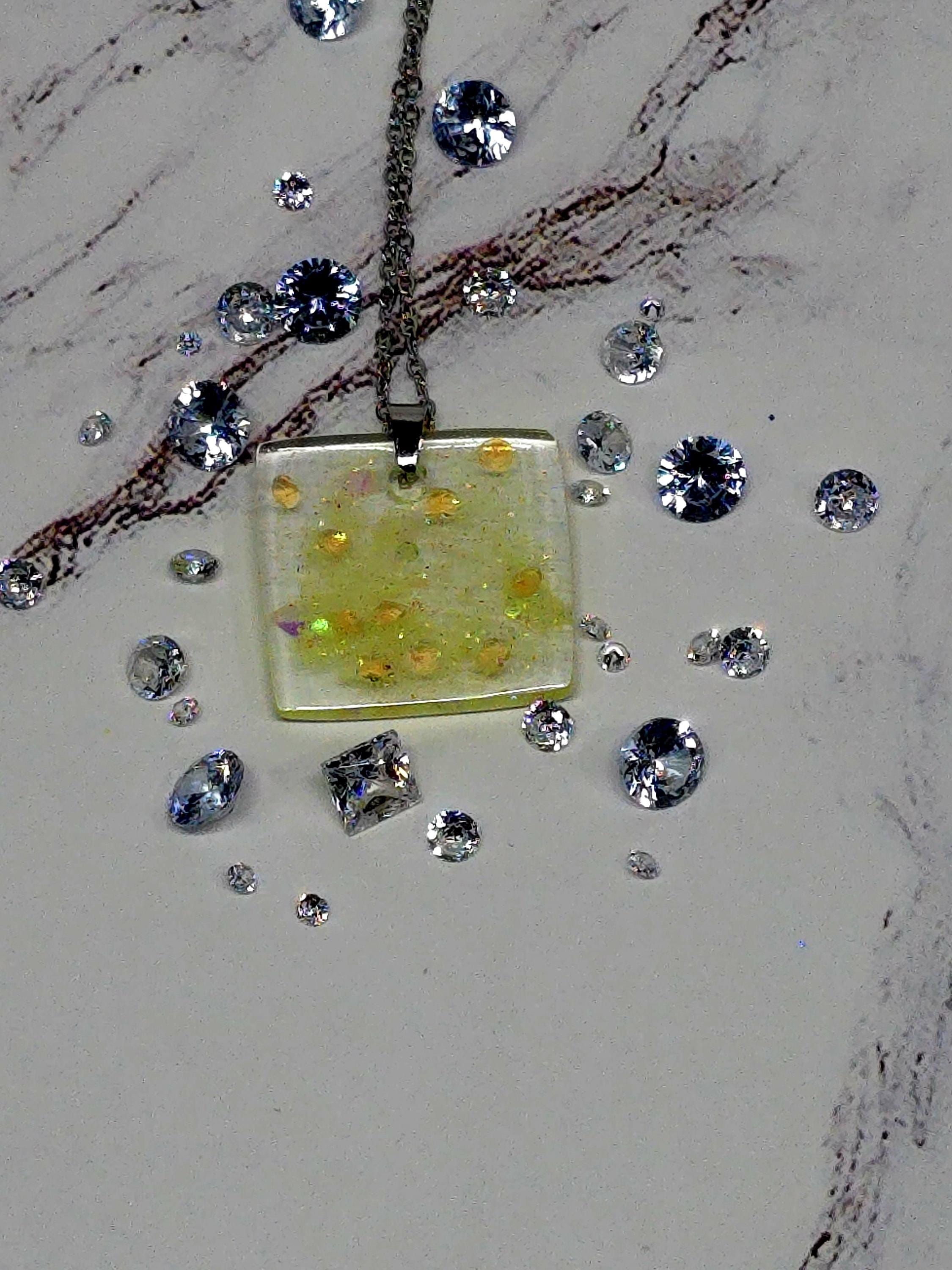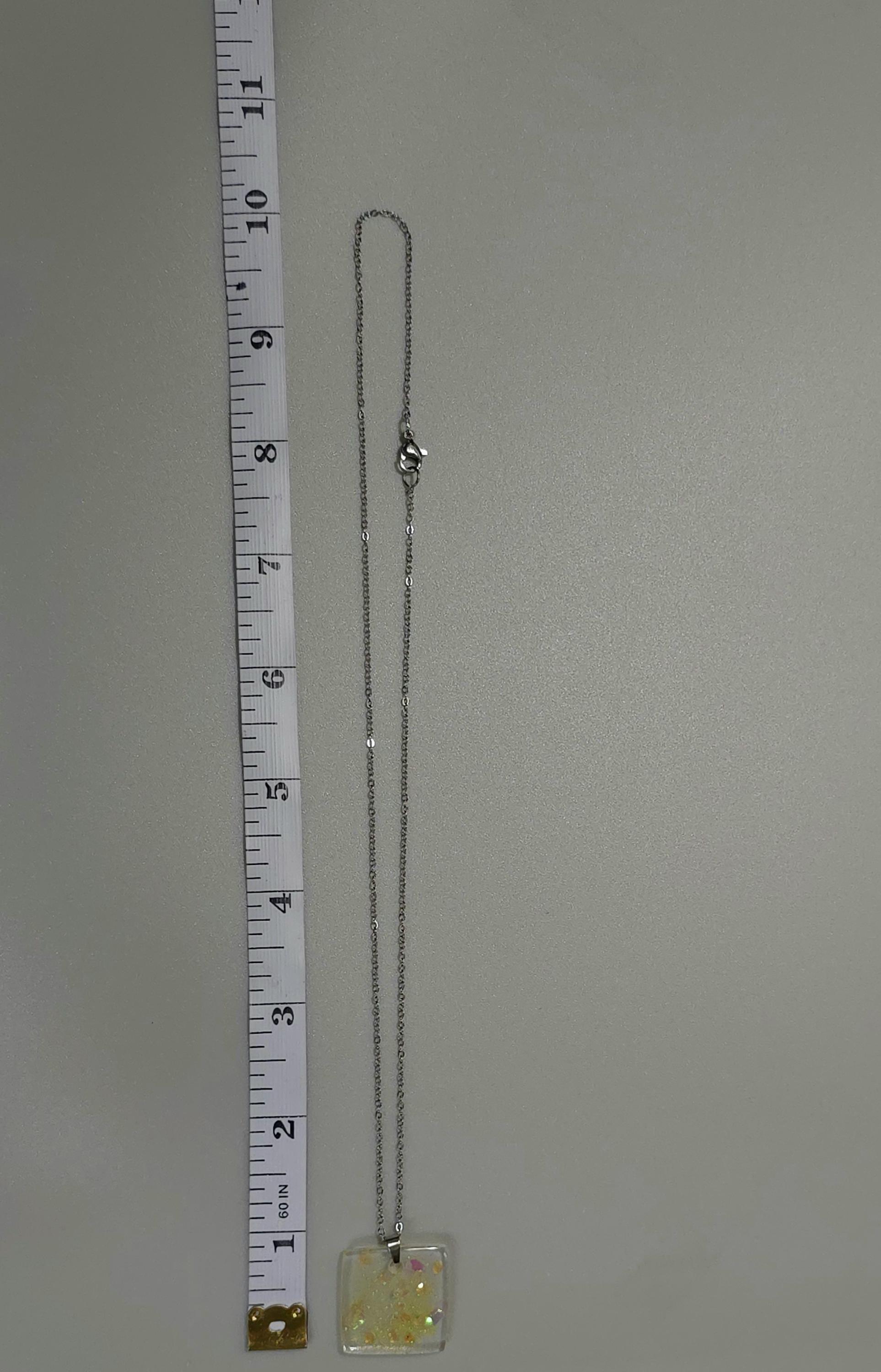 Yellow Resin Pendant Necklace: Stainless Steel Chain Necklace