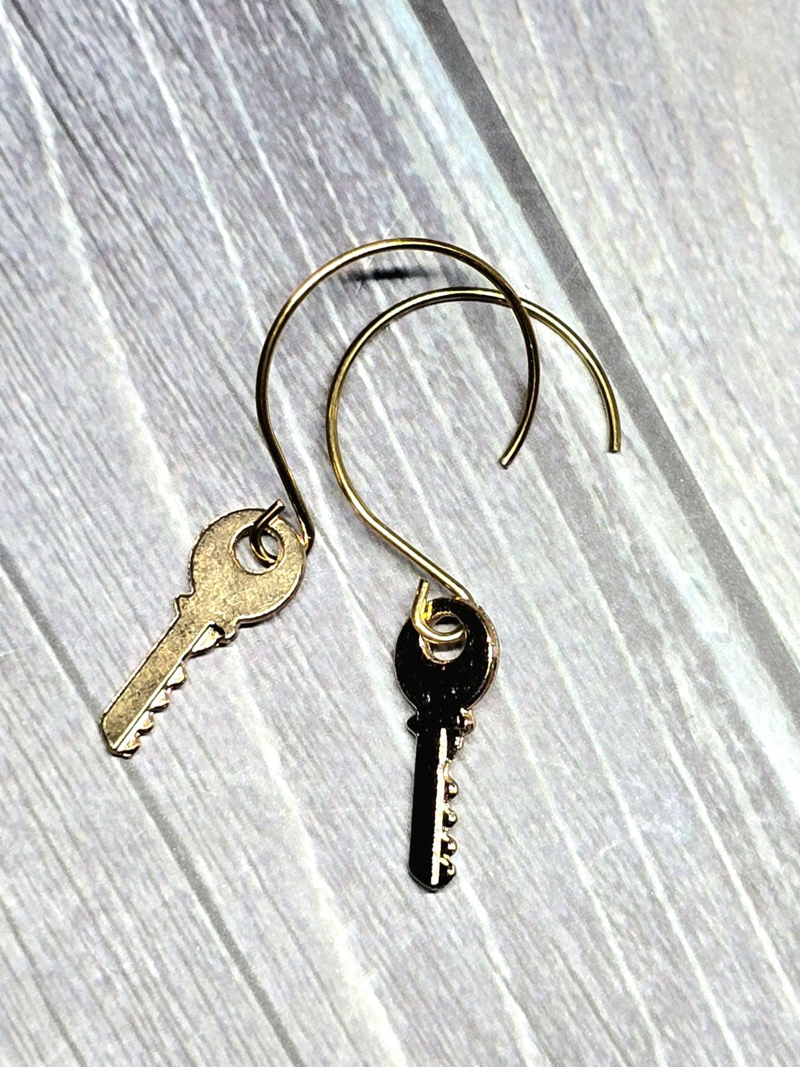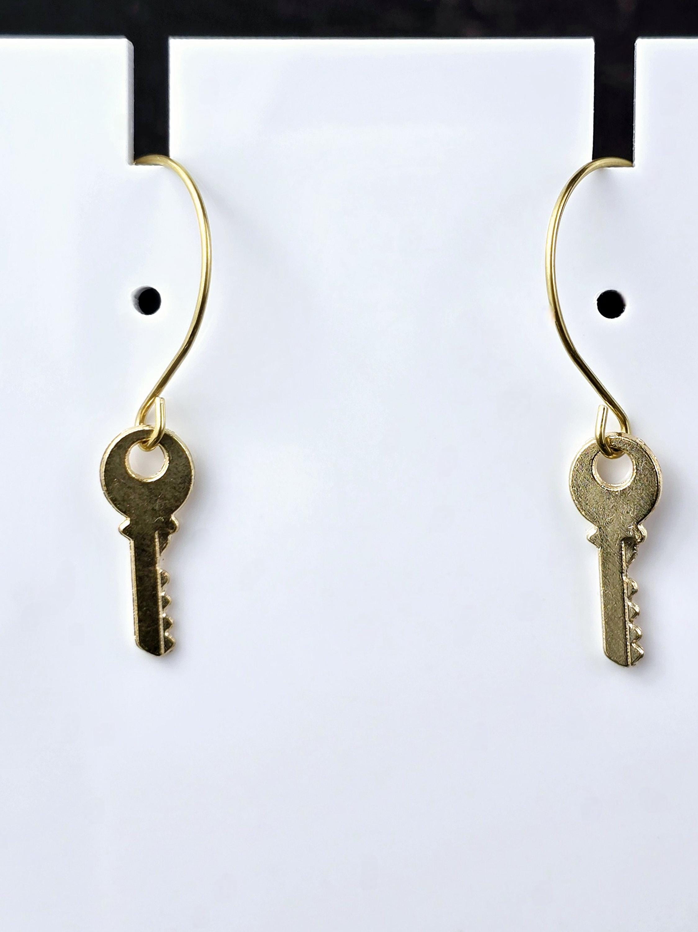 Gold Dangly Key Hoop Earrings