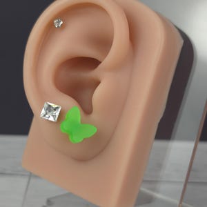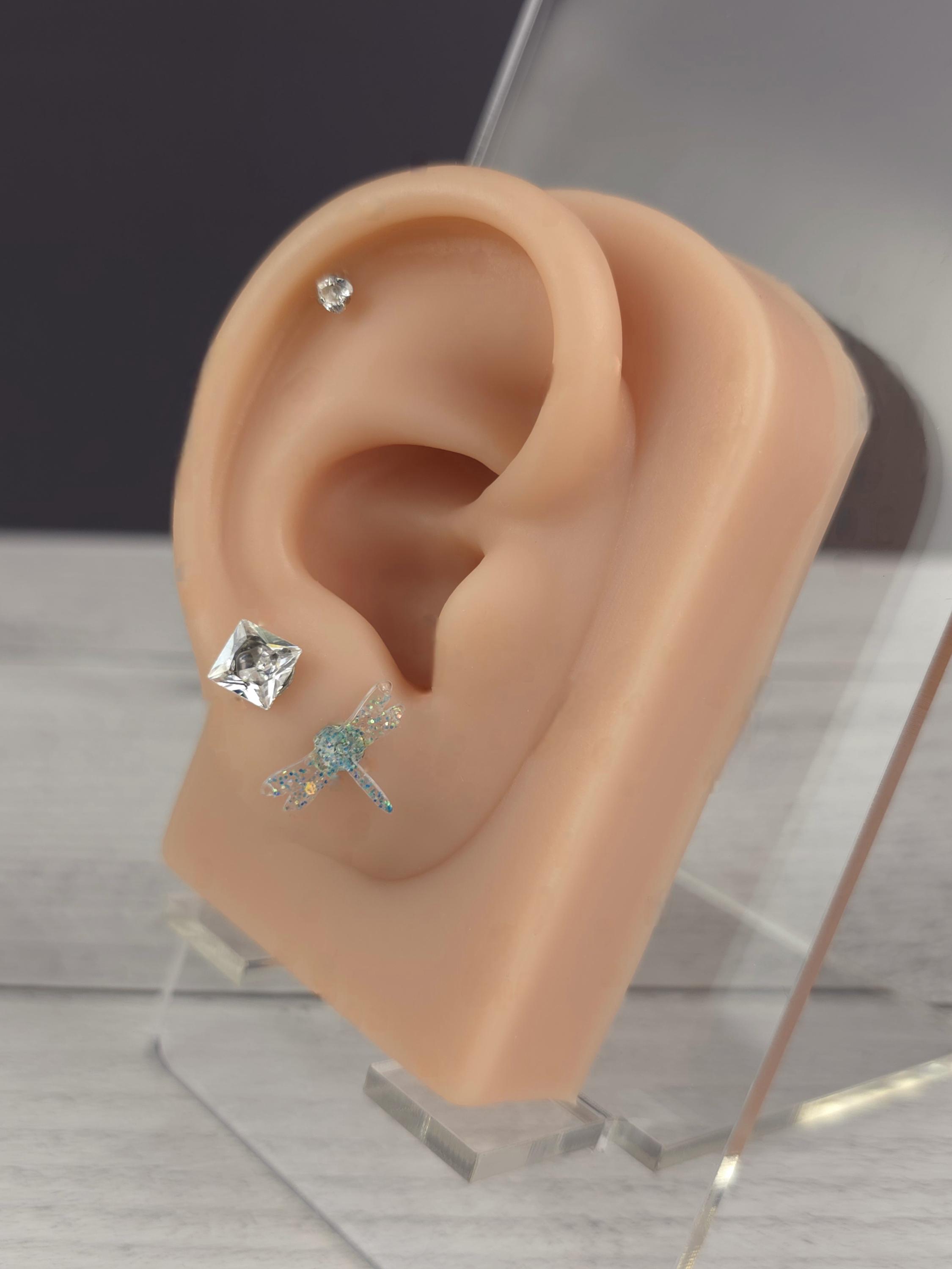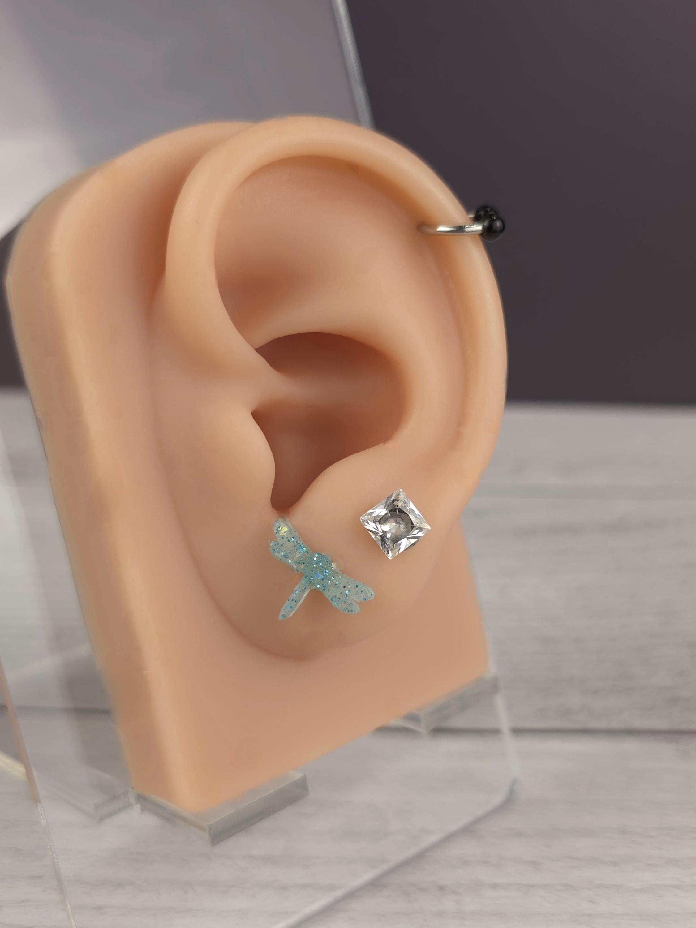 Elevate your style with these stunning stainless steel flat post studs featuring intricate dragonfly pendants. Crafted from premium epoxy resin, the 1.25cm long by 1.25cm wide dragonflies add a touch of whimsy to any outfit. The durable 304 stainless steel construction ensures long-lasting wear, while the .8mm ear pins provide a comfortable fit. Make a statement with these unique and eye-catching earrings that are sure to turn heads wherever you go.
