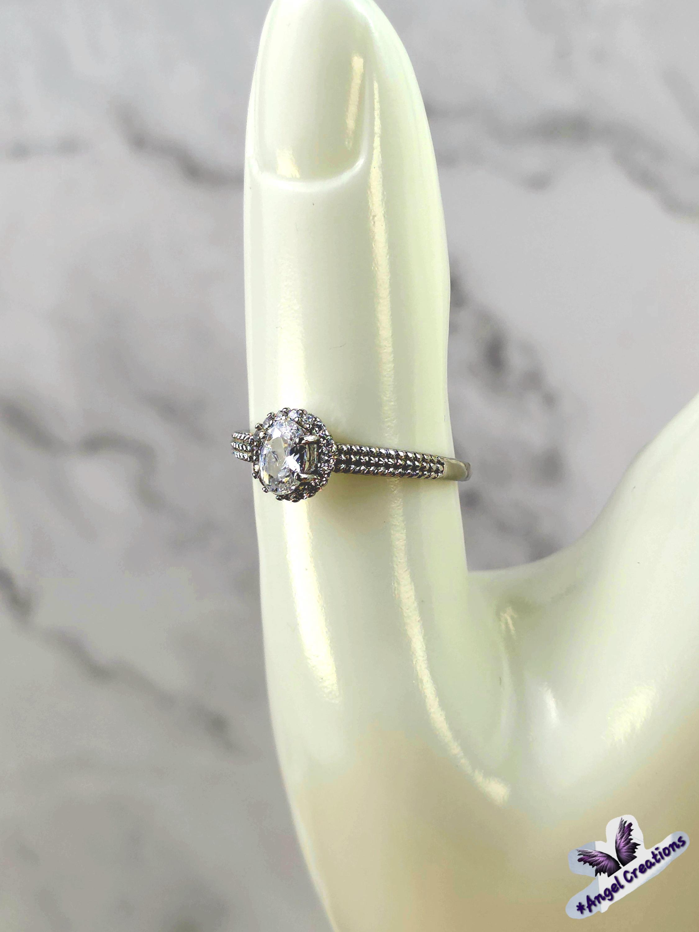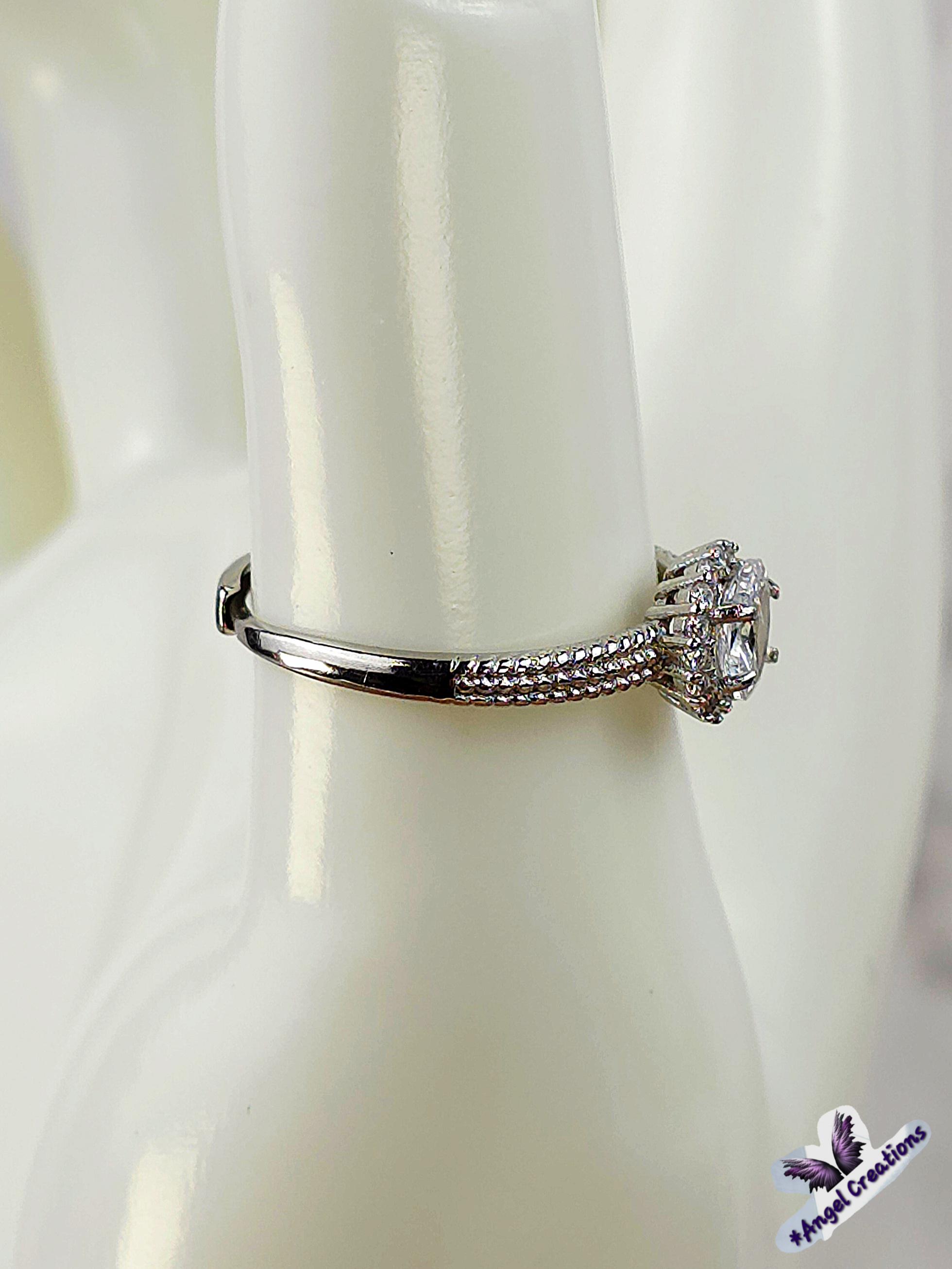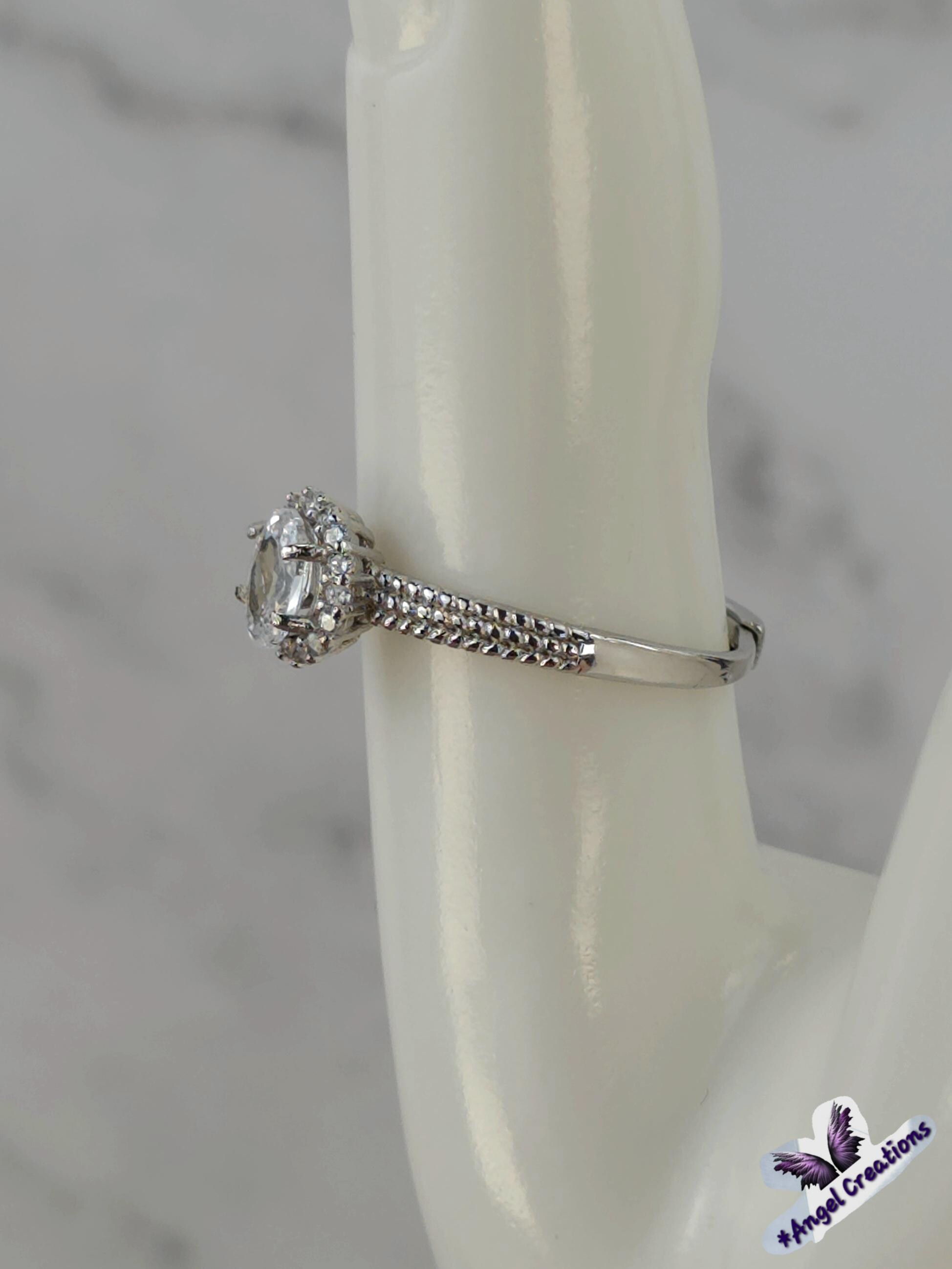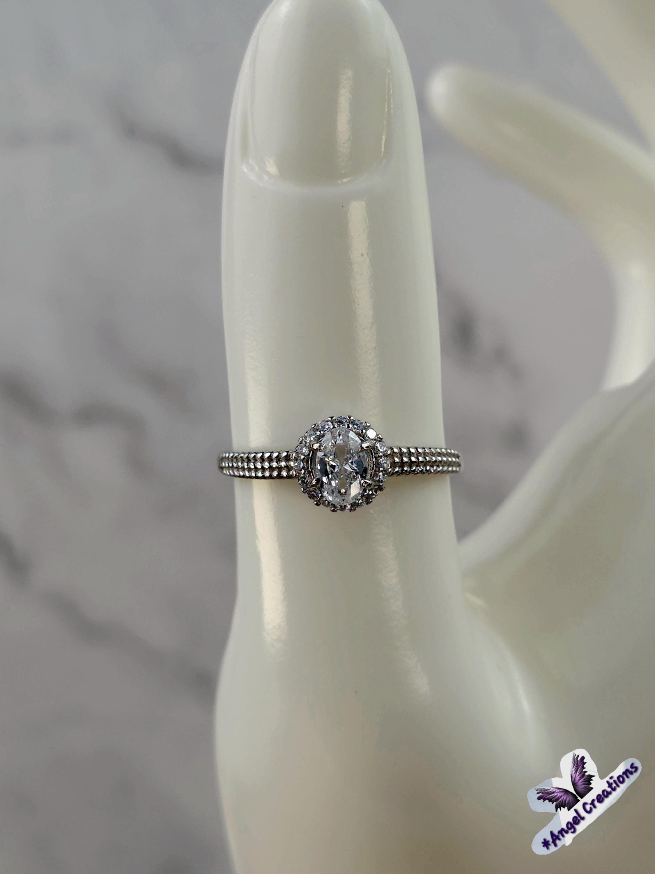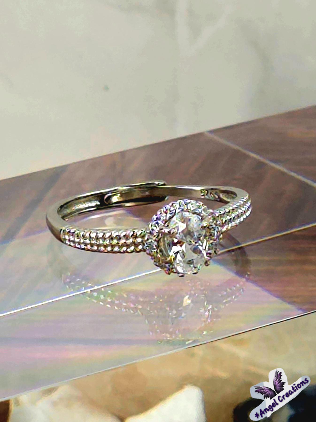 Any pieces purchased from *Angel Creations automatically comes with a promise. If your piece breaks or becomes worn over time from normal were and tare. You can ship me the piece and I will gladly repair the piece and ship back to you. No extra cost... All you pay is for the shipping. This is my promise to you, and I hope it speaks to the quaity of my work.Introducing an exquisite sterling silver adjustable ring that showcases a stunning oval clear cubic zirconium gemstone, elegantly set in a classic prong setting. This ring captures the essence of sophistication with its timeless design and brilliant clarity.
